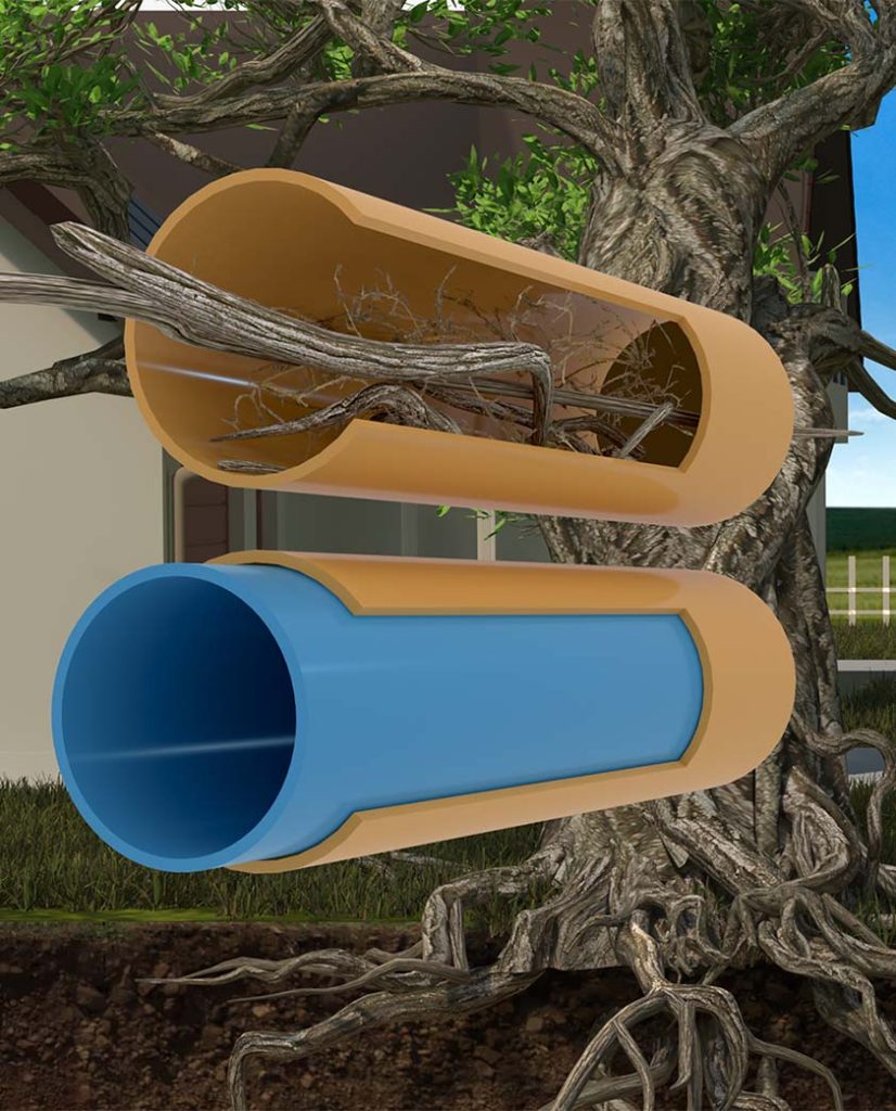 We use a strong 4-5mm liner that has a little bit of flex to withstand ground movement and pressure from large tree roots growing under or over the pipe. It is tree-root proof!